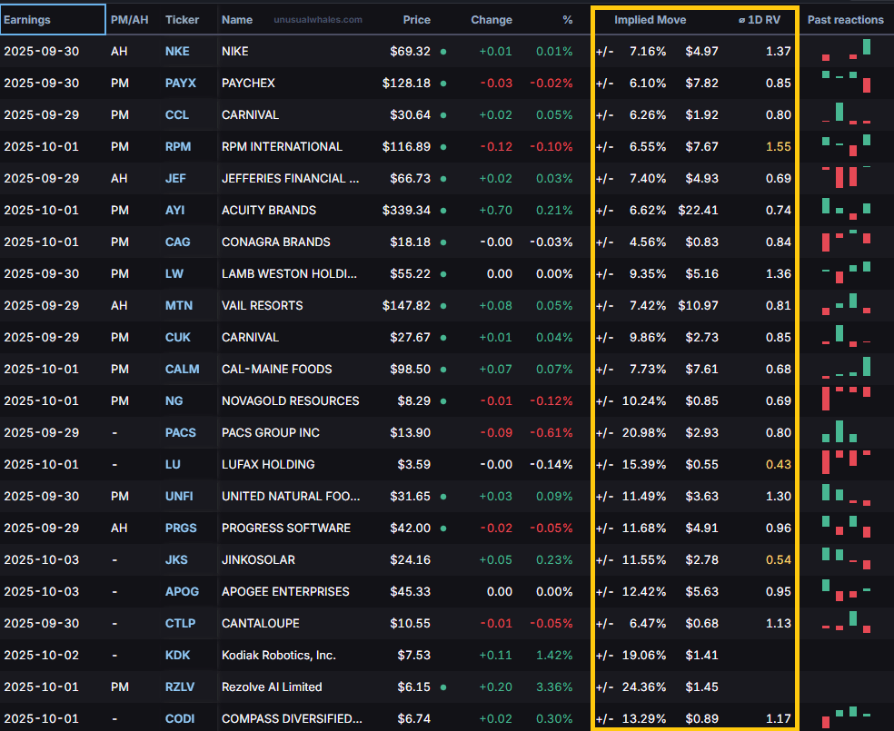 📈Implied Move: The market’s best guess at how much a stock will swing after earnings.