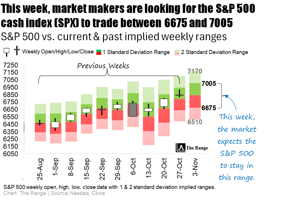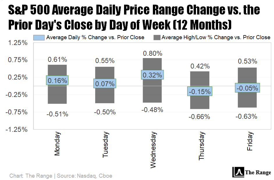 For both stock and options traders: Knowing what the implied weekly range is helps set expectations for what the likely trading limits will be. This can help prevent overaction near quantified range extremes, while also informing the traders as to whether there is still room for an intra-week rally or sell-off to run.