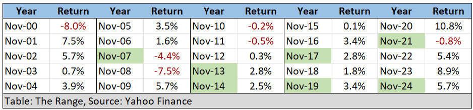 S&P 500 (SPX) - Quick November Stats Since 2000