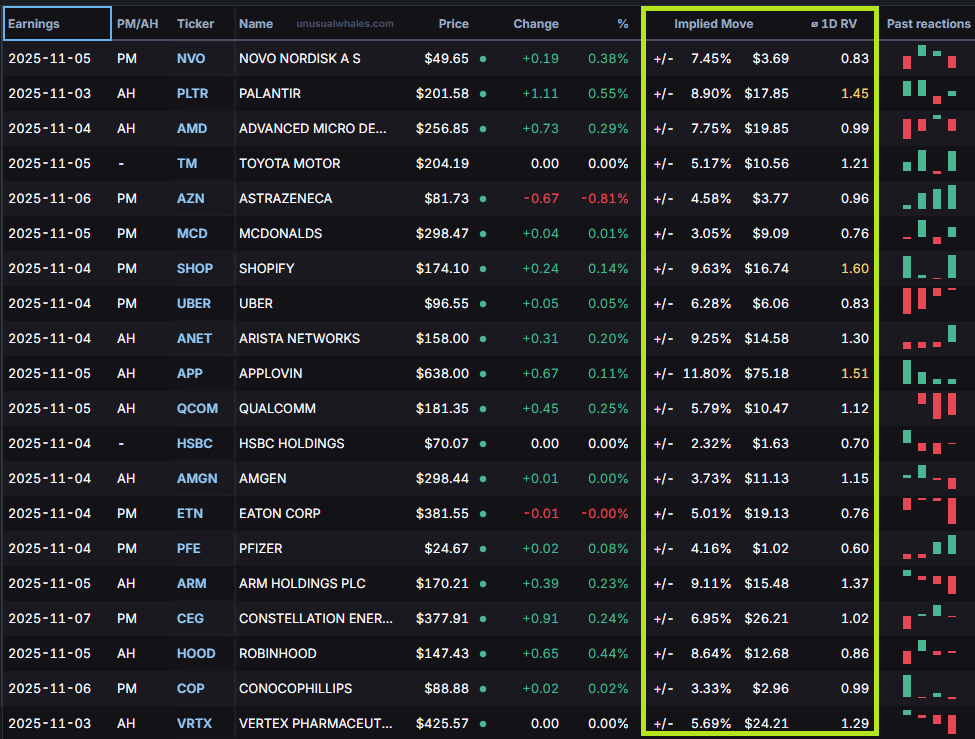 📈Implied Move: The market’s best guess at how much a stock will swing after earnings.