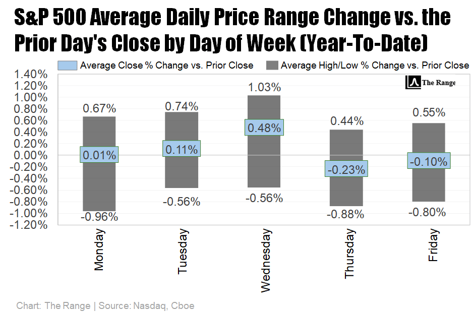On average, the S&P 500 has started each week rather sluggishly in 2025. This has been followed by better gains through Wednesday, before weakness returns in the tail-end of the week.