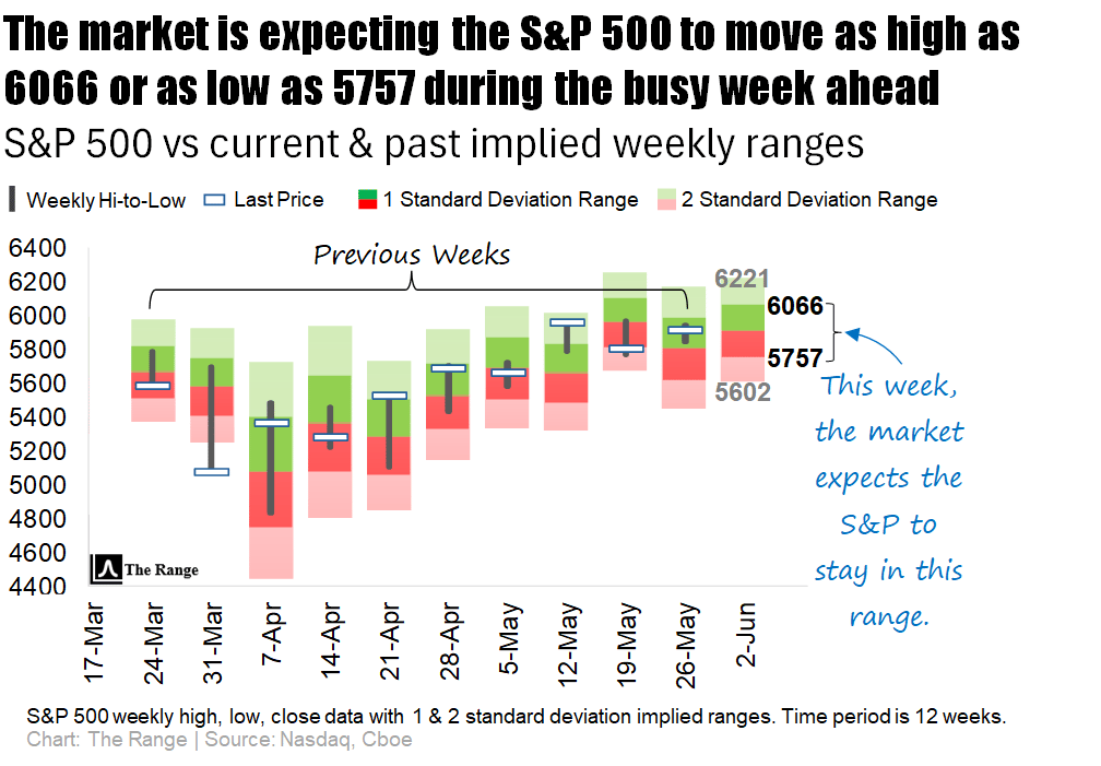 The May jobs report drops Friday, but investors won’t be twiddling their thumbs until then—job openings, private-sector payrolls, and trade deficit data are all on tap. Plus, we’ll get fresh reads on consumer credit, factory orders, PMI, and construction spending to round out the economic buffet.