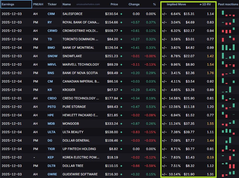 📈Implied Move: The market’s best guess at how much a stock will swing after earnings.