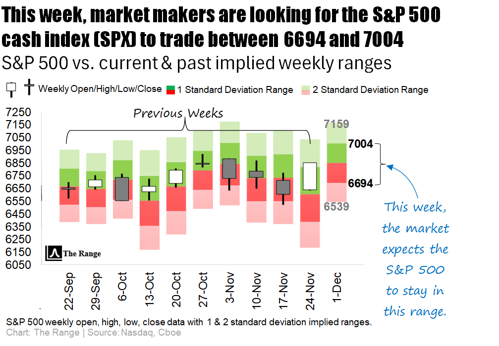 For the second time in 10 weeks, the S&P 500 closed outside the expected range set by market makers last week. And honestly, if there were ever a week for that to happen, it was during Thanksgiving’s annual liquidity coma.