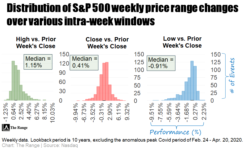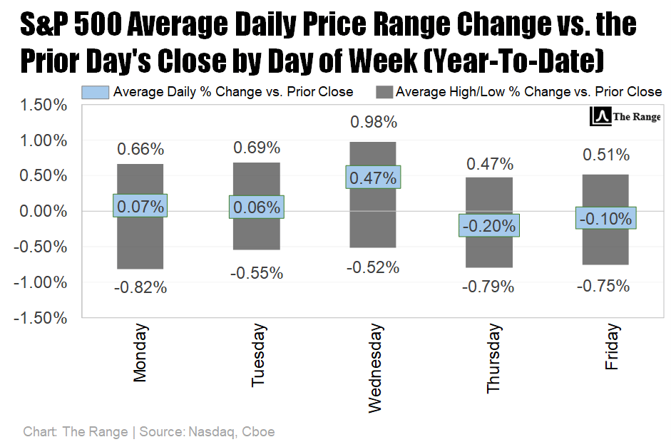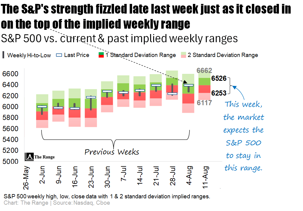 Despite everything that’s been thrown at the market in recent weeks, the S&P 500 has only closed outside of its implied weekly ranges (by a rather small measure) twice in the last 10 weeks.