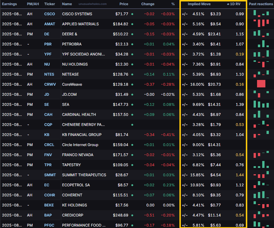 📈Implied Move: The market’s best guess at how much a stock will swing after earnings.