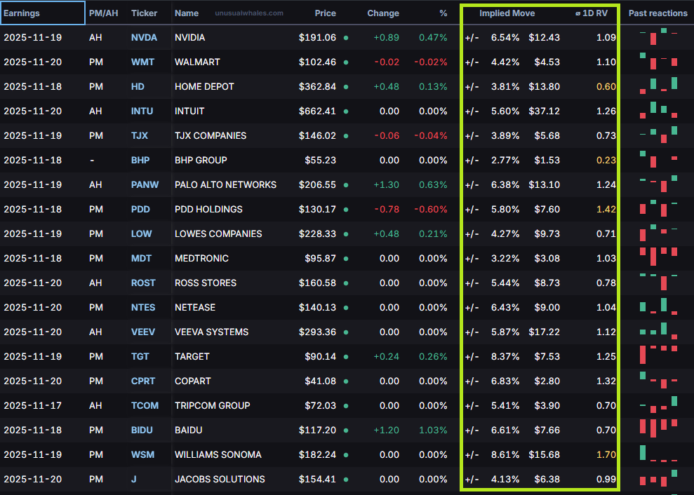 📈Implied Move: The market’s best guess at how much a stock will swing after earnings.