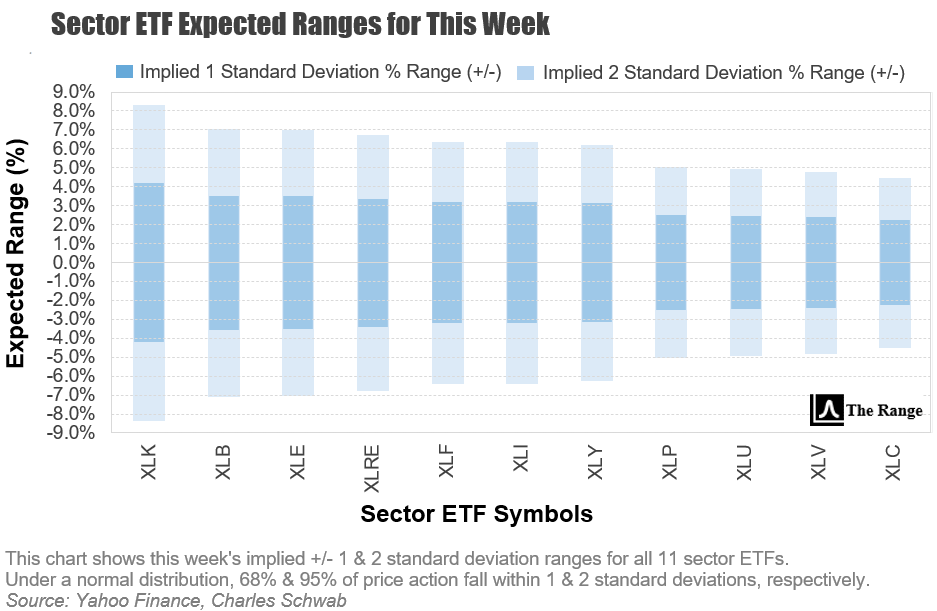 The benchmark S&P 500 has closed within its expected range in nine of the last ten weeks. With volatility (VIX) holding steady near elevated levels, this week certainly has what it takes to put that streak to the test.
